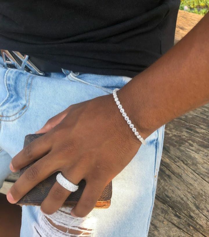 Anel Cravejado Full Iced+Pulseira Cravejada Riviera, B Prata 925