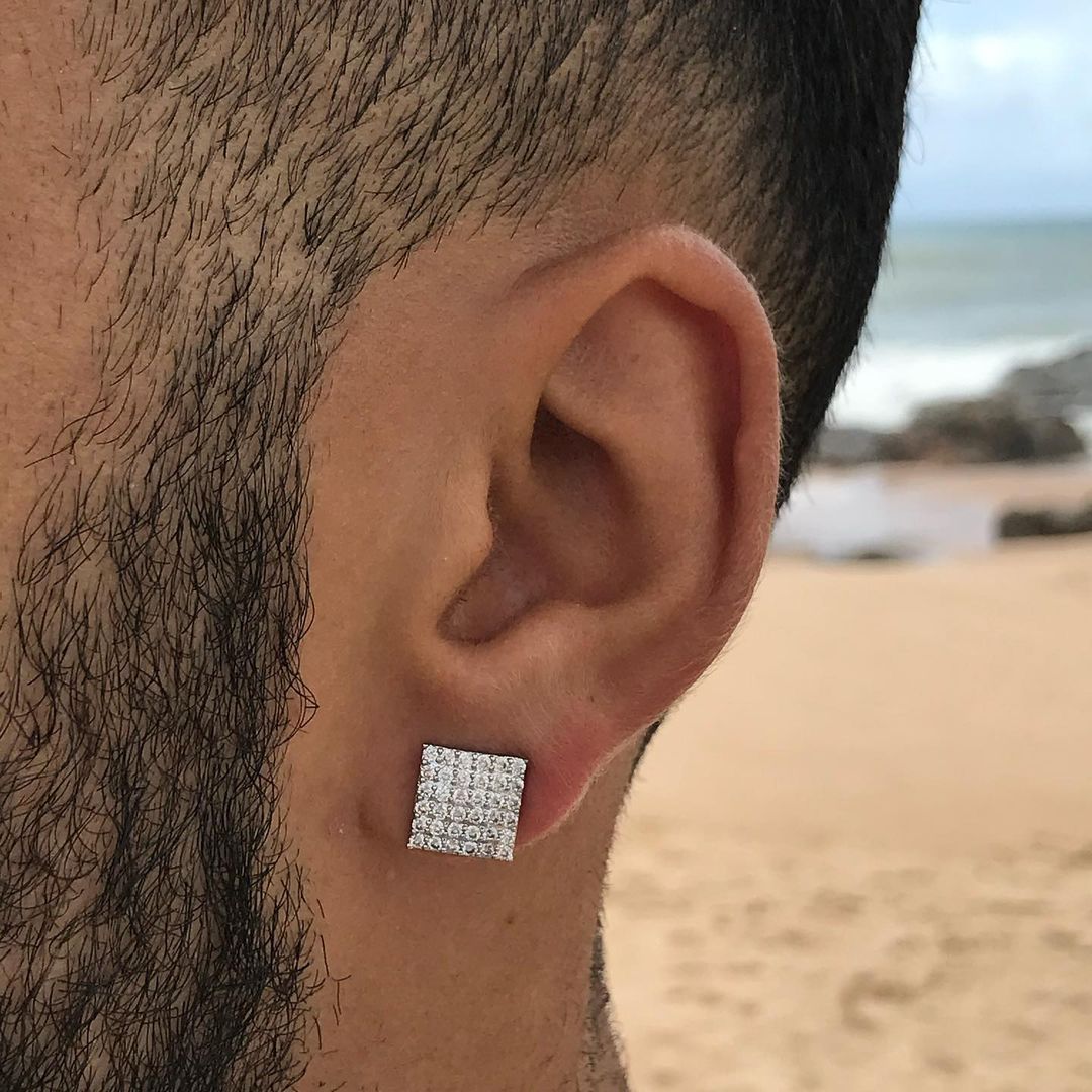 Brinco B Prata 925, Cravejado com Pedras de Zirconia